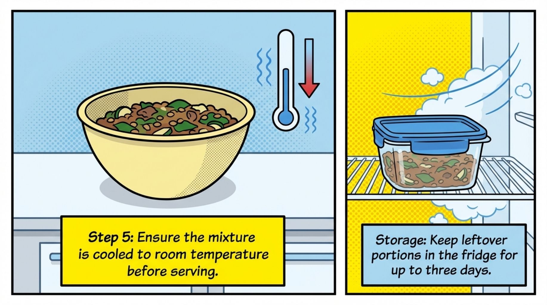 - Ensure the mixture is cooled to room temperature before serving. Store leftover portions in the fridge for up to three days.