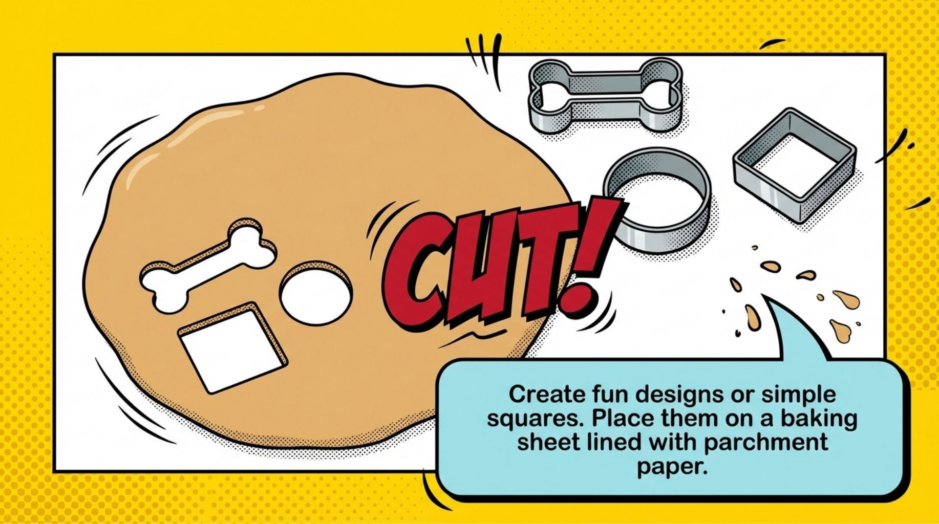 - Using cookie cutters, shape the biscuits into fun designs or simple squares and place them on a baking sheet lined with parchment paper.